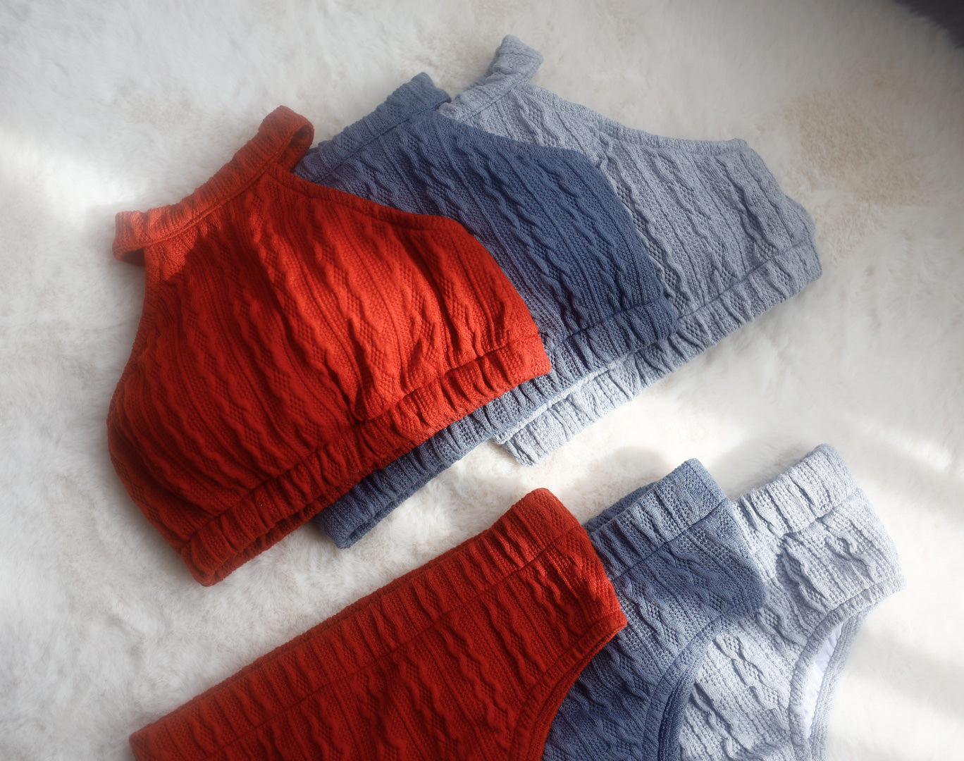 Outer fabric: Soft and lightweight. Cable stitch knitted fabric